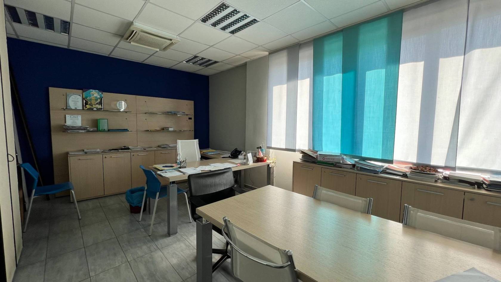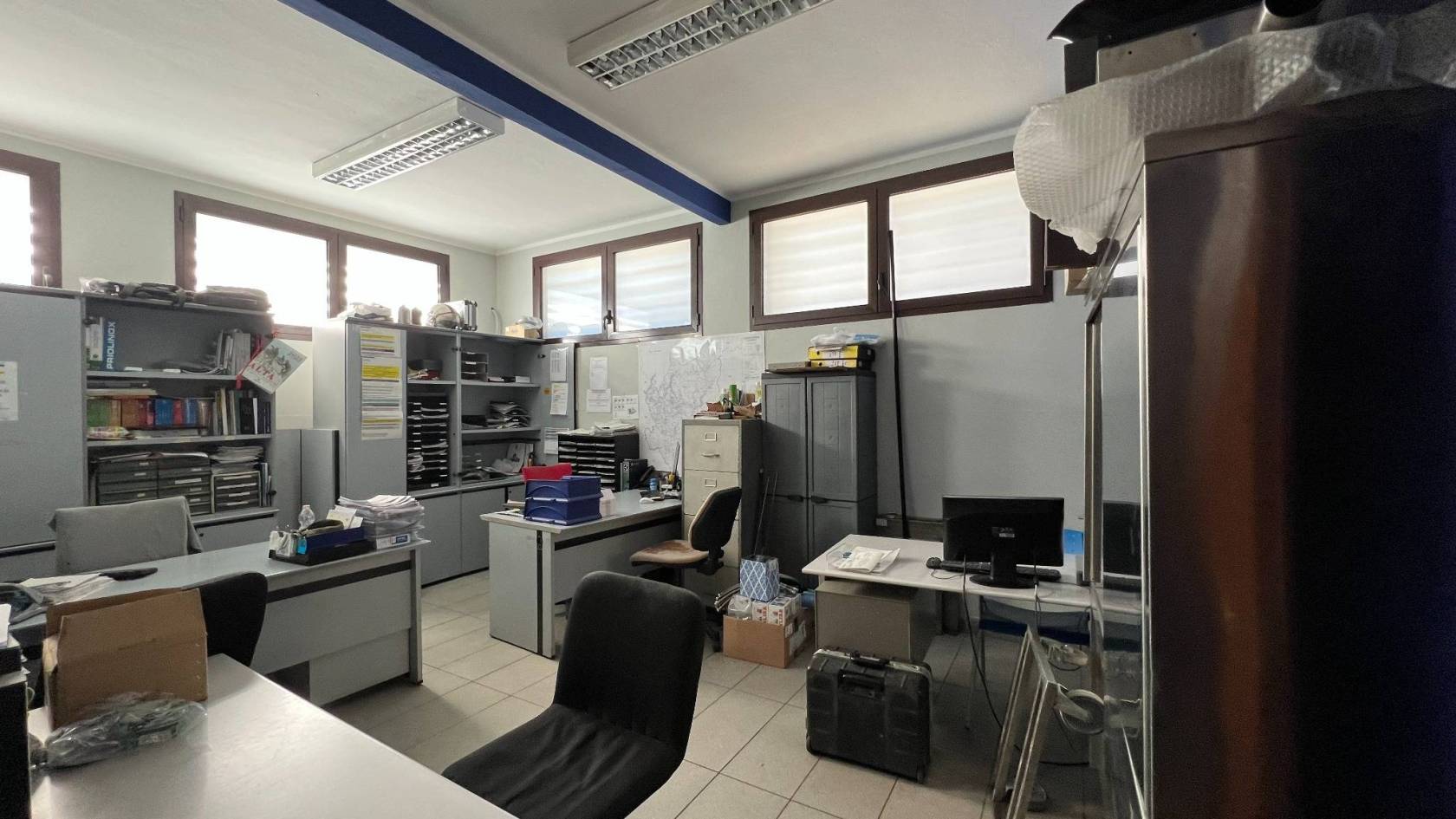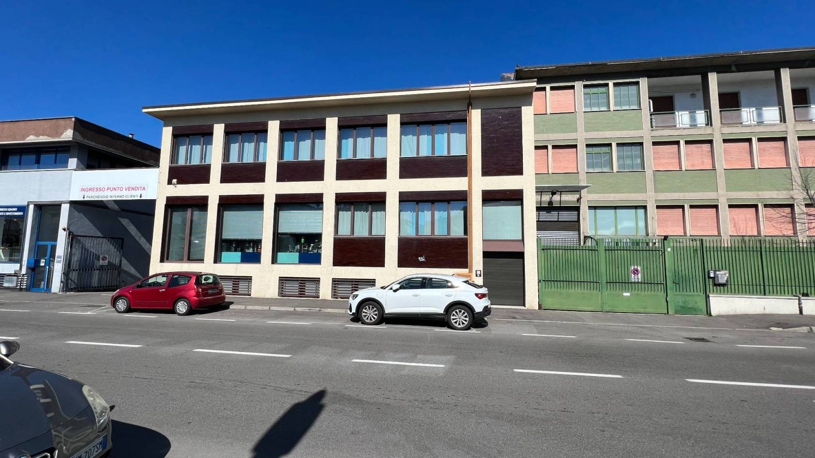 Abbiamo 240 mq di uffici climatizzati disposti al piano terra e primo piano, 300 mq di laboratorio C/3 al piano terra e 300 mq di magazzino C/2 piano interrato. Completa la soluzione un cortile recintato di pertinenza dell'immobile pari a 350 mq. Ideale per chi cerca visibilità con vetrine espositive, palestre, show room, e attività di stoccaggio.