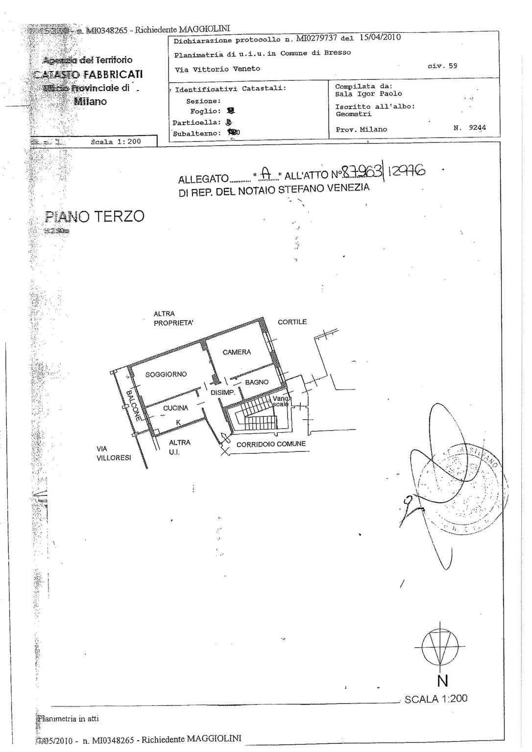 | Balcone - 3° piano | 4 Mq | 1 Mqc |